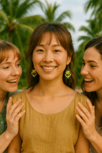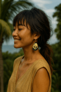 Finished with premium gold-plated hoops, these earrings bring a subtle touch of shine without feeling heavy or overpowering. Their ultra-lightweight design makes them perfect for all-day wear — from market wandering and brunch dates to beach walks and sunset cocktails.