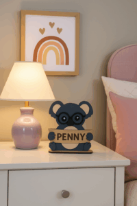 Meet our cute and playful Koala Bear, designed to bring smiles and personality to any bedroom. Each piece is laser cut from 3mm Basswood and can be personalised with your child’s name — making it a one-of-a-kind keepsake that celebrates their wild imagination.