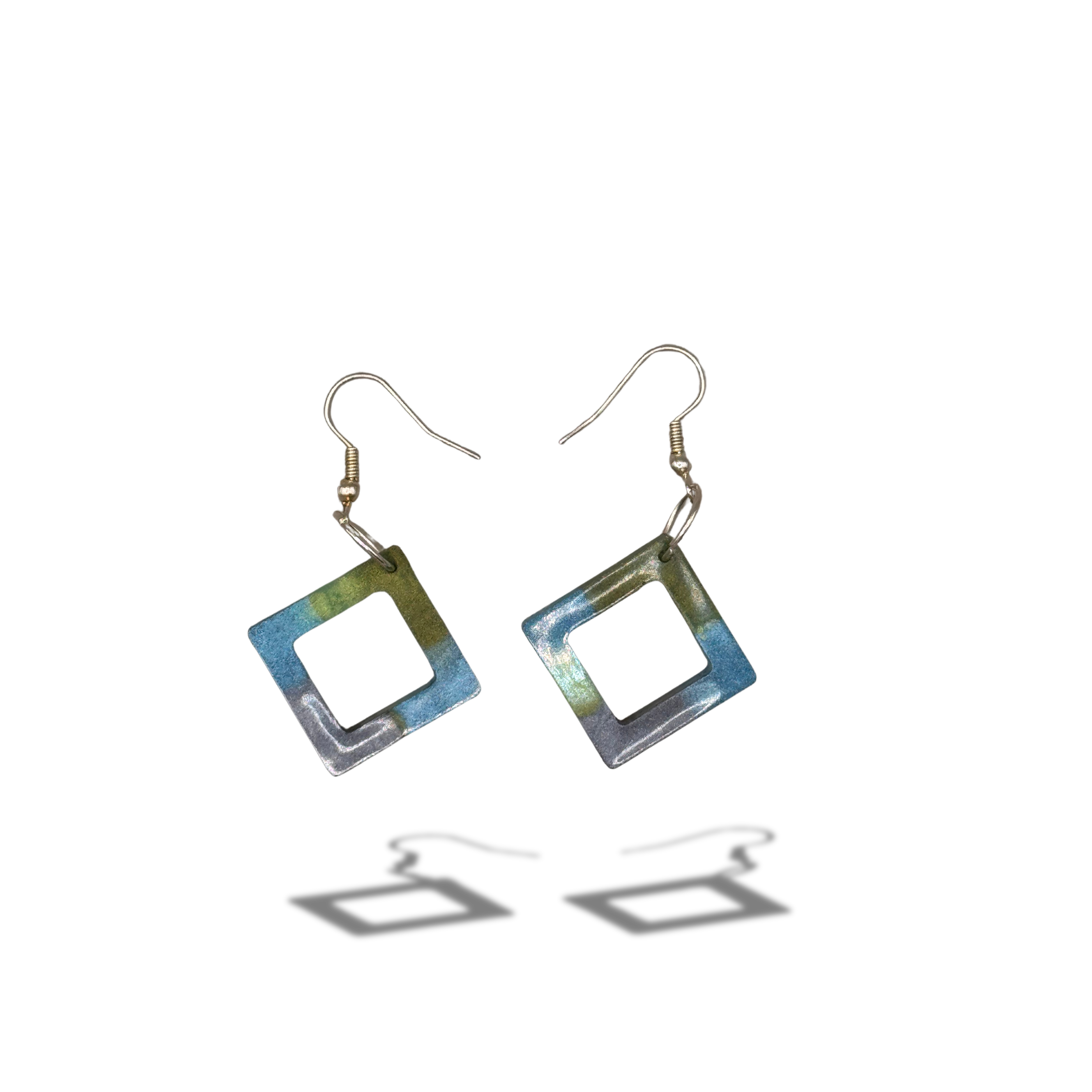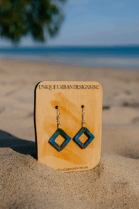 Carry the calm and beauty of the ocean wherever you go. These one-of-a-kind resin earrings capture the stunning hues of deep blue, sea green, and soft wave-like tones, beautifully paired with sterling silver fittings for a modern coastal touch.